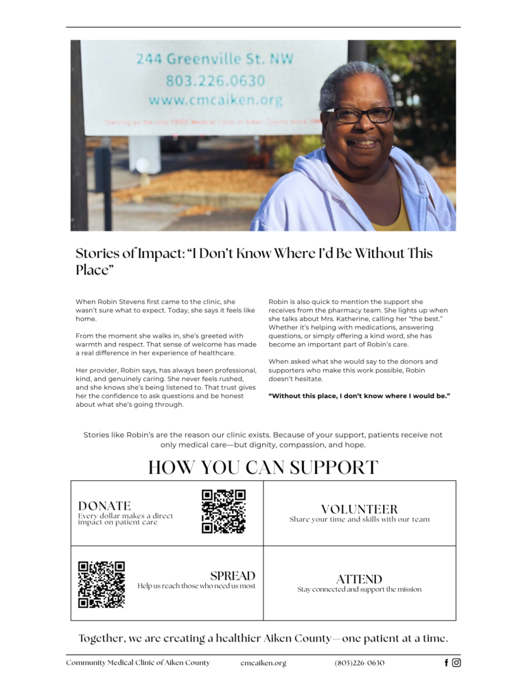 Monthly NewslettersStay up-to-date with the latest from The Community Medical Clinic of Aiken County! Our monthly newsletter brings you important updates,...